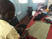 Child cutting fabric for handbagsWhile visiting Muhimbili Hospital in Dar es Salaam, Alqaim noticed that the children were particularly skilled in making their own crafts such as bags, pouches and other accessories. It occurred to Alqaim that he could outsource materials for these children to make their crafts and then sell the final products in the market. All proceeds would go back to the families of the children so that they could obtain enough money to make medical treatment affordable. In addition, the crafts were made from environmentally friendly materials such as kitenge, an unbleached cotton from East Africa, and are sourced from smaller vendors in the community.
