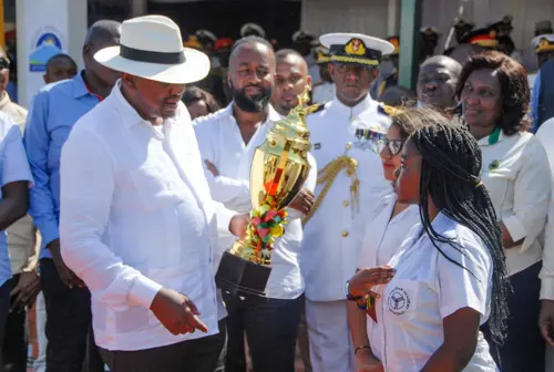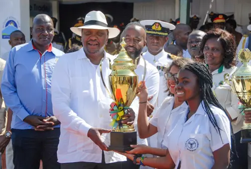 President Kenyatta presents AKA Mombasa students with prize at the Mombasa International Show