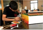 Maaher Bhaloo painting the solar farm model he designed.As part of his personal project, ‘Zanzibar - The Solar Island’, Maaher Bhaloo, a Year 10 student at the Aga Khan Academy Mombasa, proposed to the government of Zanzibar to adopt renewable energy as opposed to using fossil fuels to power up Zanzibar island. His project recommended the installation of a solar farm that will compensate for the limited access to electricity for many of the island’s local households.