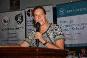 Head of Academy Alison Hampshire delivering a speech at the golf tournament.Head of Academy for AKA Mombasa Alison Hampshire said the event was an incredible initiative that will have a lasting impact on the Academy.